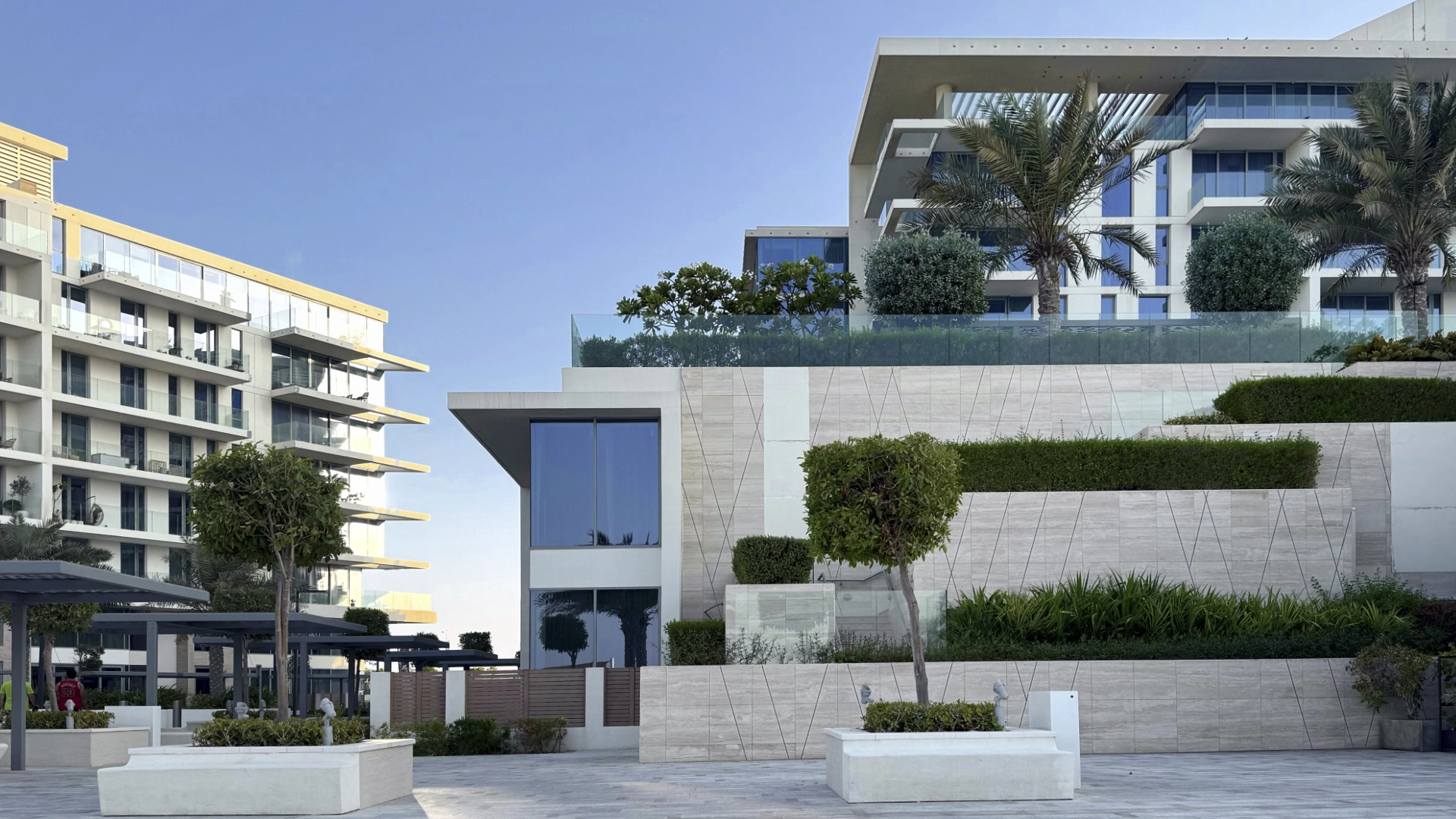 Жизнь в «Мамша Аль Саадият» построена вокруг пляжного отдыха и культуры. Вы выходите на балкон с чашкой кофе, а перед вами простираются лазурное море и белоснежный песок. Спускаетесь вниз, и через пару минут вы уже на пляже. Не на общественном городском, а на закрытом только для резидентов.